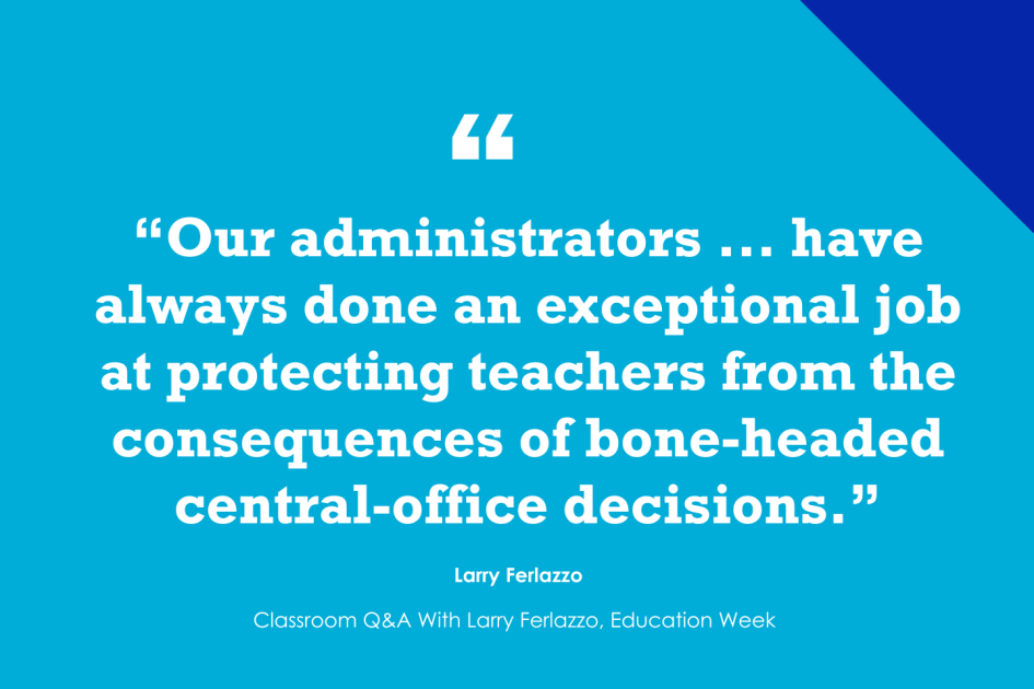 All our school’s administrators (except for one very, very brief exception) have been very supportive of teachers, students, and families, and were longtime teachers themselves. We’ve only had two principals during my career, and the most recent one was a vice principal under the first one (and the likely successor to our present principal in a few years is an existing vice principal now). They have always sought teacher input and invested heavily in teacher development through observations and teacher-requested training. They have invested heavily into restorative practices when it comes to discipline AND also deal with disciplinary issues when needed.