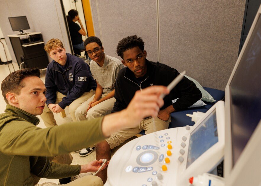 Baltimore Polytechnic Institute juniors Isaiah Bell, Kyle Nicholson, and Milo Perrett spent a recent afternoon walking on trip-hazard treadmills, doing arm curls bedecked with motion sensors, and tracing their ligaments via ultrasound.